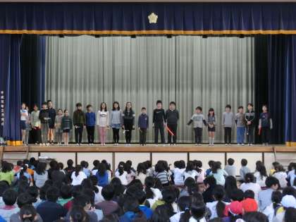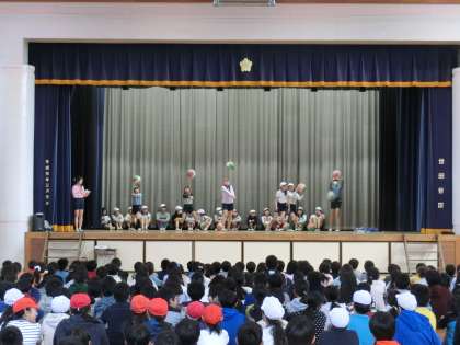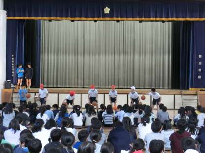 24日(金)の5・6時間目、体育館で「クラブ発表会」が行われました。本校では初めての取り組みです。12あるクラブが順番にステージやフロアに登場し、活動内容を発表しました。今回は、3年生も参加し、最前列で発表を見ていました。写真は、バスケットボールクラブ、科学クラブ、ソフトバレーボールクラブの様子です。