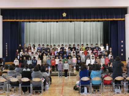 3月2日(木)、4年生が二分の一成人式を行いました。第一部は、体育館でおうちの方に向けたお礼の言葉を述べ、歌を歌いました。第二部は、各教室で「十歳の決意」を表した作文を一人ずつ発表しました。第一部は15分ほどで終わりましたが、4年生全員での呼びかけが大きな声でしっかりとできました。歌声はとても美しく、聞いている保護者の皆様の目にはきらりと光るものがありました。子どもたちにとって一つの節目を迎えることができました。