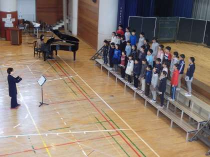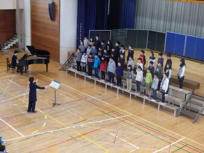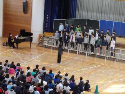 4年生からは歌声も一段と上手になり、5年生、6年生は、さらに上手でした。写真は、4の1「まきばの朝」「ゆかいに歩けば」、5の1「冬げしき」「君にあえて」、6の1「春よ、来い」「キセキ」の演奏の様子です。