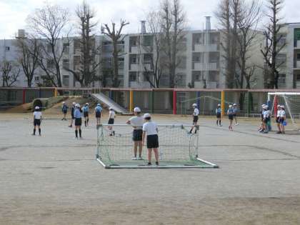 17日(金)の1時間目、6年2組と3組が合同で体育を行いました。コートを3面用意し、サッカーを男女混合チームで行いました。男女関係なく、応援する姿があり、ゲームを楽しんでいることが伝わりました。