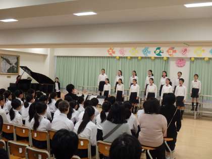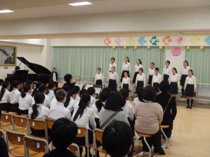 現在の合唱団は、総団員数70名(6年:14名、5年:14名、4年:17名、3年:25名)です。今日は、64名の参加でのスプリングコンサートでした。今日は、6年生の卒団セレモニーも兼ねています。6年生にとっては、合唱団のコンサートは、最後になります。6年生代表の言葉に、気持ちがよく表れていました。