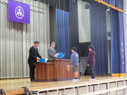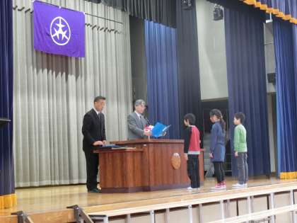修了証書を受け取る児童は、名前を呼ばれると大きな声で返事をしてステージに上がりました。受け取るときの態度も立派でした。写真は、4年生、5年生、6年生の様子です。