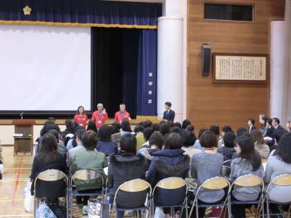 11日(火)は雨の降る寒い一日でした。午後1時45分から体育館で3年生・4年生保護者全体会がありました。最初に校長より今年度の学校経営方針についての話をしました。次に、学級担任や専科の紹介をしました。最後に、赤小ボランティアの皆さんを紹介しました。13日(木)は午後2時より1年生・2年生保護者全体会が予定されています。