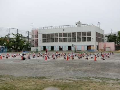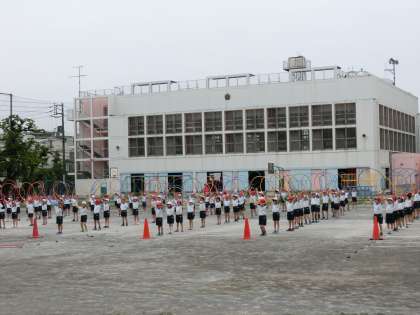 9日(火)の2時間目、フラフープを持った2年生が校庭に集合しました。運動会で披露する表現の練習をしました。今まで体育館で練習してきたので、初めて広い校庭で踊りました。これから何回も練習を重ね仕上げていきます。