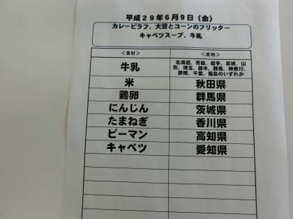 6月9日(金)の給食食材産地について