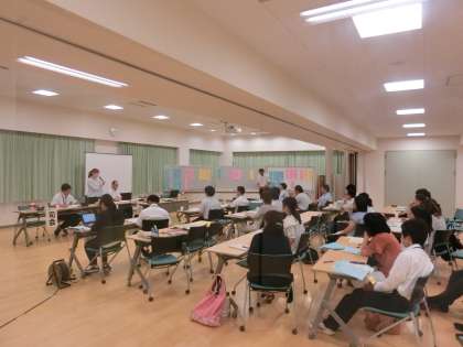 21日(水)の午後、本校において「第1回赤松学舎合同研修会」が行われました。松沢小学校と松沢中学校の先生方が大雨の中を来校しました。今回は、5年1組が体育で「跳び箱運動」の授業を、3年3組が図画工作で「粘土」の授業を公開しました。写真は、授業後の研究協議会の様子です。上が体育分科会、下が図画工作分科会です。
