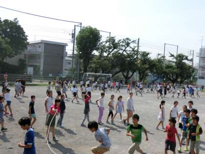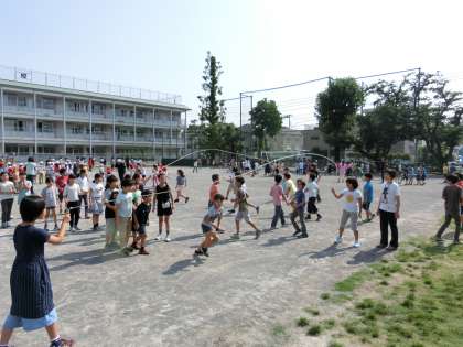 23日(金)の朝は、校庭でわくわくスポーツタイムをしました。今回は、月1回の長縄跳び測定です。休み時間を利用してクラスごとに練習する姿がありました。準備運動、練習をして、3分間の測定にチャレンジしました。「ハイ、ハイ」と掛け声が聞こえる中、どの学年も夢中になって跳んでいました。3分間の測定結果は、給食の時間に放送されました。6年生が334回の大記録を打ち立て、大歓声がわき起こりました。