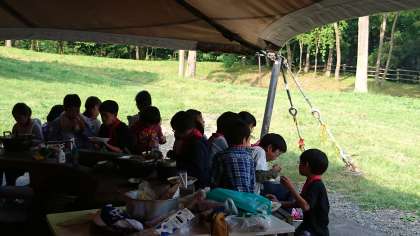 次第に気温は上がり、暑くなりましたが、風は心地く感じます。グループごとの「いただきます。」の声が、川場の森に響きました。協力して作ったカレーライスに、子どもたちは満足そうな表情でした。