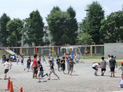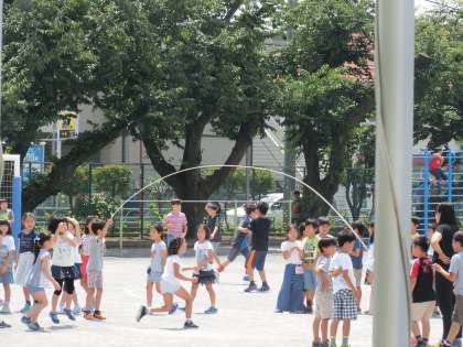 3日(月)は各地で猛暑日となりました。気温が上昇する中、休み時間に校庭で元気に遊ぶ子どもたちの様子です。クラスのみんなで「長縄」を練習したり、ドッジボールをしたり、それぞれに楽しい時間を過ごしていました。休み時間終了のチャイムが鳴ると、走って教室に戻る姿があり、ハンカチやタオルで汗をぬぐい、水分補給をしていました。