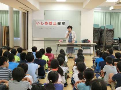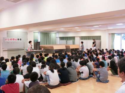 8日(土)の3時間目、5年生と6年生は「いじめ防止教室」に参加しました。弁護士の方に講師をお願いし、「いじめの定義」からお話がスタートしました。子どもたちの中には、「いじめられる子にも原因がある。」と考える子が結構いました。ドラえもんの中の登場人物を取り上げながら、それぞれの立場について考えることができました。