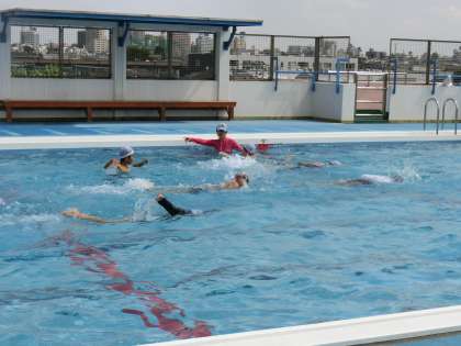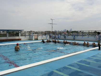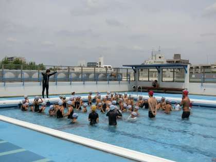 24日(月)から前期夏季水泳指導が始まりました。高学年、中学年、低学年の順でプールに入ります。教員3名、外部指導補助員2名の計5名で指導を行います。3年生以上は、準備運動、水慣れをしたあと泳力別に練習を行いました。クロールまたは平泳ぎで25mを泳げるように何回も練習をしました。前期の指導は、8月4日(金)まで行われます。