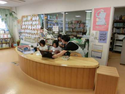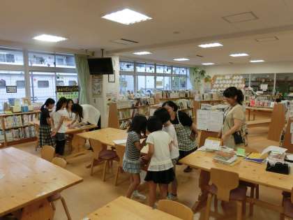26日(水)の午後、図書室において「司書体験」講座が行われました。この講座は、サマースクールの一つとして今回初めてできたものです。9名の子どもたちが参加しました。講師は、図書室の司書の先生方です。指定された本を探し出したり、本についているバーコード操作をしたりして次々と体験をしました。本を修理する際には、丁寧に作業をしていました。
