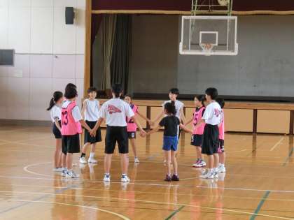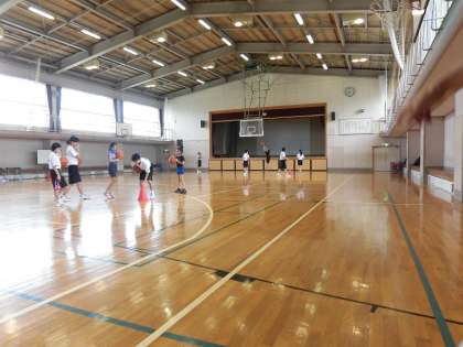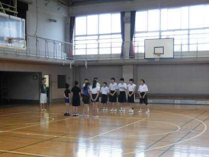 松沢中学校での部活動体験2日目は、8月1日(火)午前9時から始まりました。女子バスケットボール部に本校の児童2名が参加しました。館内をランニングしたり、シュート練習をしたりしながら最後はゲームも体験しました。最後は、コートの中央で手をつなぎ円陣を組んで終わりました。先輩のやさしさを感じていました。