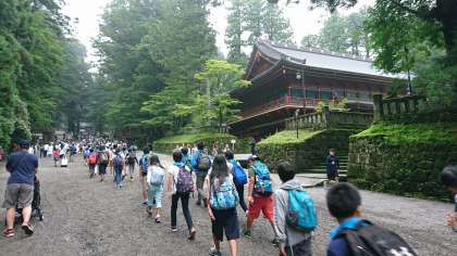 途中で渋滞しましたが、予定通りに東照宮に着きました。輪王寺から東照宮に向かう森の中の参道を歩くと、ひぐらしの鳴き声が響いていました。平成の大改修後の東照宮は、とても賑わっています。