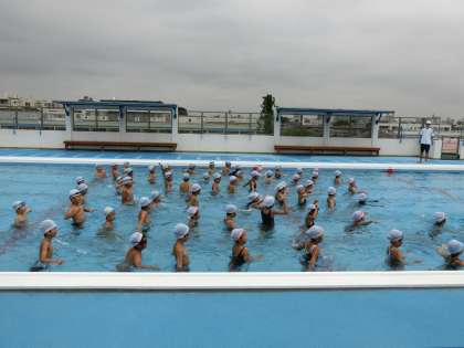 4日(金)午前10時10分からは中学年の部の水泳指導が始まりました。水慣れをしてから、高学年同様、級別に検定を行いました。70名の参加者がいましたが、話をよく聞いて取り組んでいました。プールサイドからの声援が多く、検定中の友達の後押しとなりました。