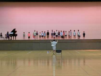 7日(月)午前、合唱団の子どもたちは日本大学文理学部100周年記念館ニューアリーナをお借りして、NHK全国学校音楽コンクール東京都本選に出場するための練習を行いました。ニューアリーナをお借りするのは、7月28日(金)に次いで2度目です。広いアリーナで声の響きや音程を確認しながら、2時間半たっぷりと練習しました。会場までの安全管理、練習中の児童管理や物品の管理等すべてにおいて、合唱団世話人の保護者の皆様にご協力いただいています。いつもありがとうございます。