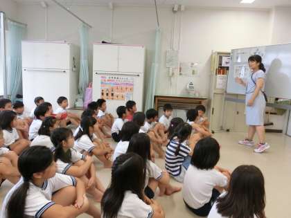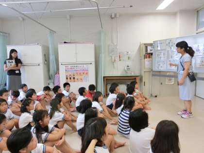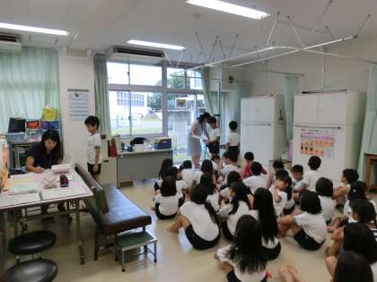 6日(水)、3年生の計測をしました。計測前に養護教諭から「生活リズムは大丈夫?」と題して保健指導がありました。朝ご飯を食べるとどんなよいことがあるのか、よい眠りにつくための方法などの話しがありました。子どもたちはうなずきながらよく聞いていました。計測が始まると一人ひとり、「よろしくお願いします。」「ありがとうございました。」とあいさつがしっかり言えました。