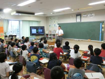 4年生は2学期、総合的な学習の時間に「福祉」について取り組みます。12日(火)、都立久我山青光学園視覚障害部門の先生をお招きして、「見えにくいこと」についてのお話をしていただきました。人によって見え方が違うこと、商品の使い方を間違えないようにデザインに工夫がされていることなどを学びました。子どもたちは話を聞きながら、メモをよくとっていました。