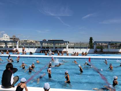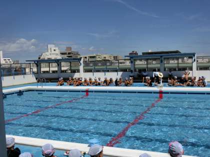 13日(水)の1・2時間目、2年生は今年度最後のプールに入りました。準備運動、シャワー、水慣れと進み、検定を行いました。最後は、男女対抗「宝探し」をして楽しみました。