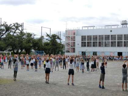 15日(金)の朝はわくわくスポーツタイムでした。校庭に集合し、あいさつをしてから準備運動をします。そのときに、運動委員会の5・6年生が前に出て手本を示します。サーキットトレーニングは16種類あり、体の筋肉をいろいろと動かすことができます。体育の授業でバンブーを始めた5年生が、今回バンブーを楽しむ姿がありました。経験したことで「やってみよう。」という意欲がわいたのだと思います。