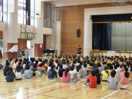 20日(水)5時間目、体育館で「日光林間学園発表会」が行われました。6年生が5年生を招待し、グループごとにまとめたことを発表しました。テーマは、「日光の滝について」「ハイキングについて」「宿舎について」「江戸村について」「日光東照宮について」などがありました。紙芝居風にしたり、劇仕立てにしたりしながら、5年生にわかりやすいように発表をしていました。