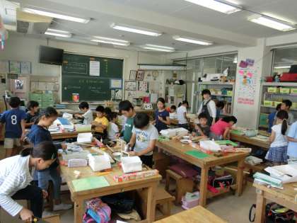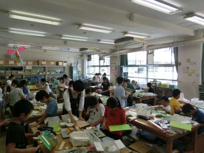 29日(金)の3・4時間目、4年2組は図画工作の時間でした。現在、取り組んでいるのは、「つみキング」と題した工作です。「王様とパートナーが楽しく過ごせるお城を建てよう」のねらいに向かって、子どもたちが木材をのこぎりで切ったり、釘を打ち付けたりしていました。11月の学習発表会に向けて完成がとても楽しみです。