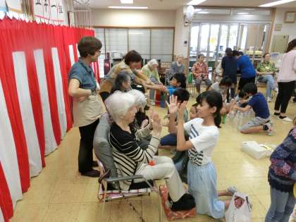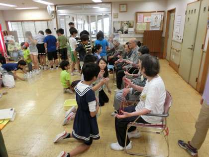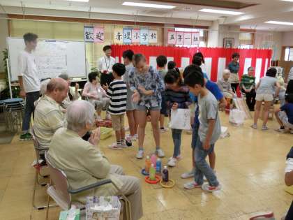 5年生は毎年、学校の近くにある「デイホーム赤堤」を訪問させていただいています。今年度は、3日(火)、4日(水)、6日(金)に伺います。3日は1組が交流をさせていただきました。子どもたちは自分たちでプログラムを考え、歌のプレゼントをしたり、一緒に遊んだりしながら楽しいひとときを過ごすことができました。写真は、あやとり、輪投げ、手遊び歌をしている様子です。