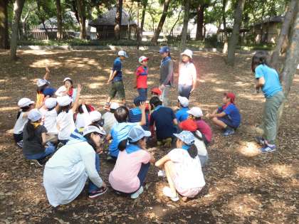 蘆花恒春園に到着した子どもたちは、たてわり班ごとに遊んだり、お弁当を食べたりして過ごしました。遊びは6年生が午前用に2つ、午後用に2つ考えて準備してきました。「かごめかごめ」「だるまさんが転んだ」「はないちもんめ」「鬼ごっこ」などをして楽しく遊ぶ姿がありました。食事の時間になると、おうちの方が用意してくださったお弁当を広げ、喜んで食べていました。保護者の皆様には、前回と今回の2回分のお弁当作りをありがとうございました。午後2時20分に全ての班が元気に学校に戻ってきました。