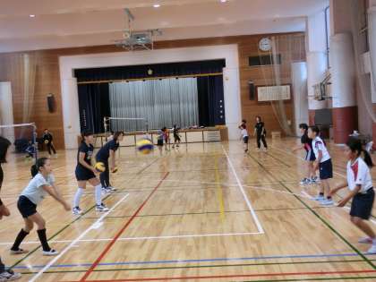 14日(土)は授業日ではありませんでしたが、午後2時から4時までバレーボール教室を行いました。4年生から6年生まで13名が参加しました。体をほぐしてから、ボールを持っての練習に入りました。互いに「ハイ」「ハイ」と声を掛けあうことを何度も指導されていました。今回もPTAバレーボールのお母さん方に練習のお手伝いをいただきました。ありがとうございます。