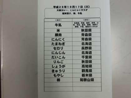 10月17日(火)の給食食材産地について