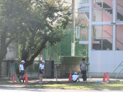 18日(水)は久しぶりに太陽が顔を出し、青空が広がりました。その空の下、6年生は連合運動会の朝練習を行いました。連日の雨で校庭にあった白線が消えてしまい、他学年の先生たちも手伝って準備を行いました。練習前、練習後に「よろしくお願いします。」「ありがとうございました。」と自主的にあいさつする6年生の姿がとても立派でした。
