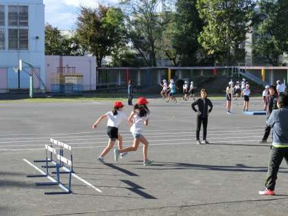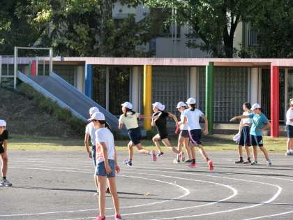 台風22号が去り、30日(月)は気持ちのよい青空が広がりました。31日に行われる連合運動会に向けて最後の朝練習が行われました。6年生は各種目の最終練習をし、本番を迎える心の準備もしていました。他学年の先生たちも約3週間に渡る朝練習に参加し、6年生の安全を見守ってきました。31日は、各自がベストタイムを出すことを期待しています。
