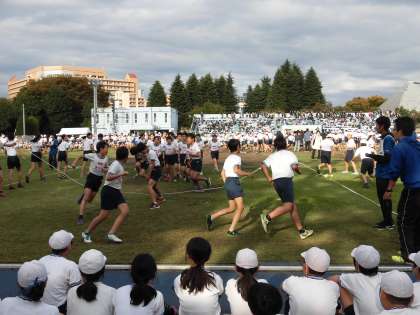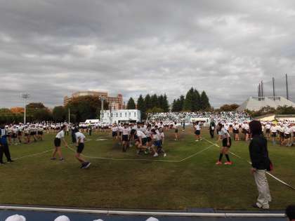 31日(火)、総合運動場において「第52回連合運動会」が開催されました。25日に延期になった20校の6年生が一堂に会し、各種目において自己ベストをめざしました。本校の6年生は、自分たちで作成した「学級旗」を持参し、男女を問わず応援する姿がありました。特に、学級ごとに行う長縄の計測では、日頃の成果を発揮すべく3分間集中して跳ぶことができました。1組が跳んでいる時は2組が、2組が跳んでいるときは1組が「ハイ、ハイ」と声をかけていました。その姿に先生たちも感動していました。保護者の皆様には、2度にわたるお弁当の用意、これまでの健康管理、当日の応援をいただき誠にありがとうございました。写真は、開会式、1組の長縄、2組の長縄の様子です。
