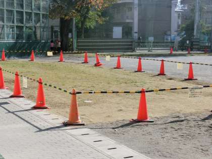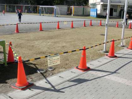 6日(月)、業者の方による「冬芝生」の種まきを行いました。作業をしたのは、職員室前エリアと家庭科室前エリアの2ヶ所です。これから約1ヶ月、芝の成長を見守っていきます。