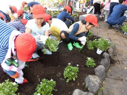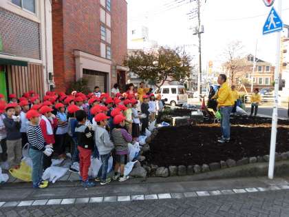 7日(火)の午前中、2年生が花植えに参加しました。今回も赤堤3丁目自治会、松沢まちづくりセンターの皆様にご協力いただきました。子どもたちは、スノーポールとパンジーの花を植えました。花壇は、世田谷線の踏み切り近くにあります。通りかかった際は、ぜひご覧ください。