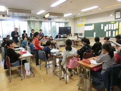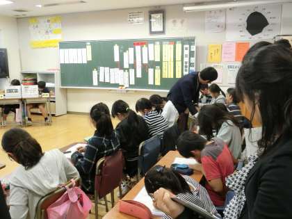 8日(水)の5時間目、5年3組で研究授業が行われました。校内研究として4回目となる今回は、「30人記念パーティーをしよう」という議題についての話し合い活動でした。子どもたちは学級会ノートをもとに、自分の意見を発表していました。授業後は、多目的室において授業についての話し合いをしたり、講師の先生からご指導をいただいたりしました。