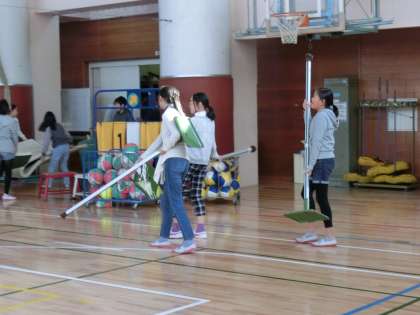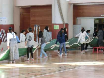 13日(月)の5時間目、6年生が体育館内の片付け作業を行いました。24日から始まる学習発表会(作品展示)の会場を作るためです。夏休み前にも作業をしているだけあって、とても手際がよく余裕さえ感じました。