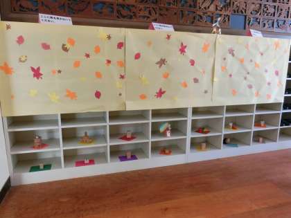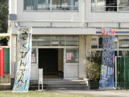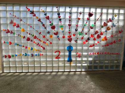 11月24日(金)、25日(土)の2日間に渡って、学習発表会(作品展)が行われました。今回は、特集として「その8」まで紹介いたします。最初は、保護者、地域の皆様をお迎えした第3昇降口周辺の様子です。保護者の皆様には上履き持参、下靴持ち運びのご協力をありがとうございました。受付を済ませてまず最初に2年生共同制作の「ハートのクジャク」がお出迎えしました。