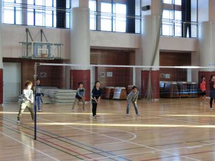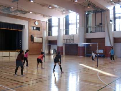 学習発表会が終わり、体育館での活動が再開されました。トップバッターは、バレーボール教室の朝練習です。4年生6人、5年生4人、6年生1人が参加しました。基礎練習のあとは、相手の打ったサーブを受ける練習をしていました。「声を出して。」と先生からの指示がありました。