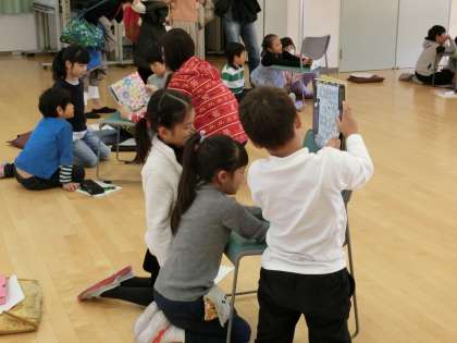 2年生の教科「日本語」には、「一冊の本から声を出して本を読もう」という単元があります。9日(土)の4時間目、3組は「自分が選んだ本を音読して、友達に聞いてもらう」ことをめあてに取り組みました。3人のグループを作り、互いに読み聞かせをしました。参観してくださった保護者の皆様も子どもたちの読み聞かせを一緒に楽しんでくださいました。