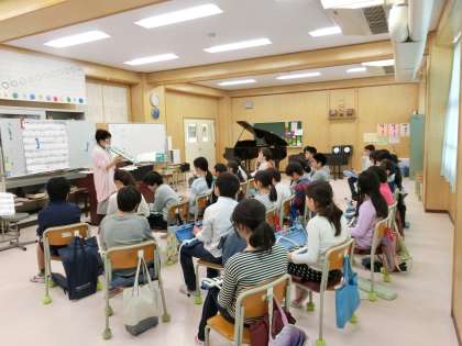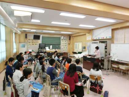 運動会の6年生の種目の一つに「赤小パレード」(通称:赤パ)があります。今の6年生が第49代、来年度の6年生は第50代となります。5年生は、3月の6年生を送る会第2部で6年生から赤パを引き継ぐため、少しずつ練習を始めています。曲目は「風を切って」「キリマンジャロ」「トップオブザワールド」です。鍵盤ハーモニカで楽譜なしで演奏できるように練習をしています。写真は、5年2組の様子で、「トップオブザワールド」の階名読みを覚えていました。