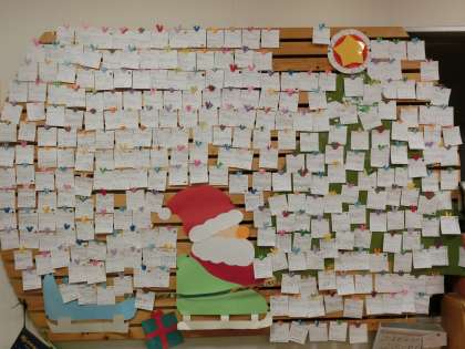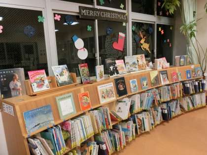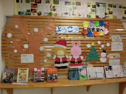 12月と言えば「クリスマス」を連想する子どもがたくさんいます。そんな子どもたちに合わせて図書室もクリスマスバージョンに変身しています。図書室内では、「おすすめの本 総選挙」に取り組んでいます。(2枚目の写真です。)はじめははっきり見えていたクリスマスツリーがいつの間にか隠れてしまいました。それだけたくさんの子どもたちが参加しているのです。さて、子どもたちのおすすめ第1位に輝く本は何でしょうか。
