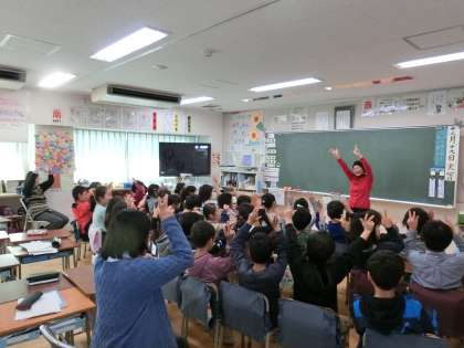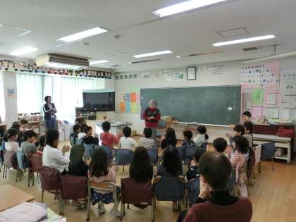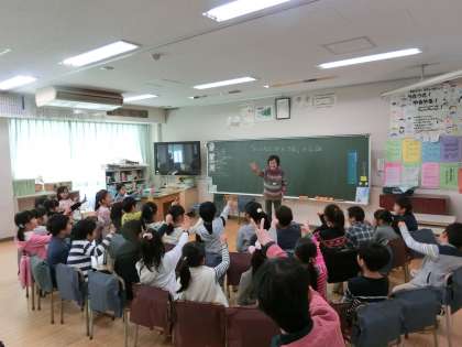 19日(火)、読書活動の一つとして「お話会」がありました。今回は、「おはなしカメさん」という団体の皆様による素話でした。1年生から3年生までの各教室で実施していただきました。話の途中に手遊び歌が入り、子どもたちはとても喜んで取り組んでいました。写真は上から、1年1組、2年3組、3年1組の様子です。