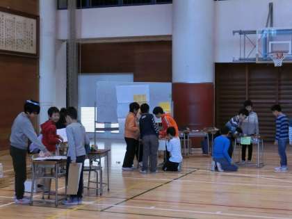 20日(水)、4年生が体育館で学年集会を行いました。題して「学年文化祭」です。各お店を用意してお客さんになったり、店員さんになったりしていました。各学級の実行委員が何回も話し合いを重ね、この日を迎えました。会の途中には、有志による劇も上演され、子どもたちにとって笑顔いっぱい、楽しさいっぱいの充実した時間になりました。