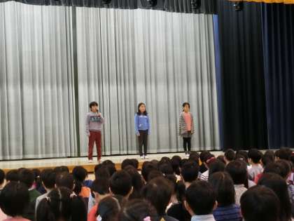 9日(火)、第3学期のスタートです。学校に子どもたちの元気な姿が戻ってきました。午前8時25分から始業式を行いました。校長先生からは、「『見つめよう!伸びてきた自分』を3学期のテーマとして頑張っていきましょう。」とお話がありました。児童代表の言葉は、4年生でした。5年生に向かうそれぞれの思いをしっかりと発表することができました。生活指導の先生からは、3学期は予告なしで避難訓練を実施することが伝えられました。