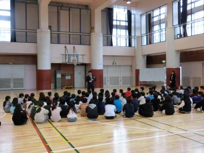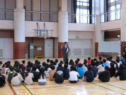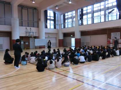 5年生も学年集会を開いて、6年生からバトンを受け継ぐための心構えについて担任の先生から話を聞きました。「自律が大切であること」「5年生のみんなで力を出して頑張ること」の話に5年生はしっかりと耳を傾けていました。