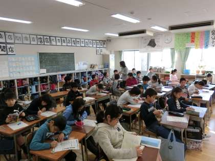 16日(火)の朝は、各教室で「新聞コメント」に取り組みました。新聞記事を読んで設問に答えたり、自分の考えを書いたりします。低学年は、オリンピック・パラリンピックのマスコットについての内容でした。1年生は「どれもかわいい。」「決められない。」と悩みながら1つを選んでいました。写真は上から1年生、2年生、4年生の様子です。