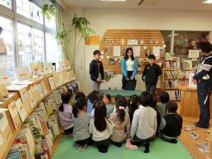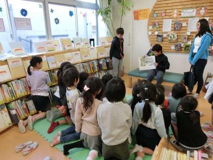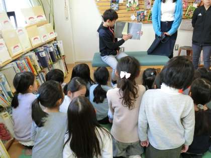 図書委員の有志による読み聞かせが16日(火)の中休みにありました。給食の時間中に低学年のクラスをまわり、宣伝をしてきた甲斐があって、予想以上に人が集まりました。6年生の3人のうち、時間の関係で2人が読み聞かせをしました。「どろんこハリー」「へんしんコンサート」の絵本を上手に読んでいました。6年生はクラス遊びの時間でしたが、自分たちがやると決めたことだからと読み聞かせを優先させていました。