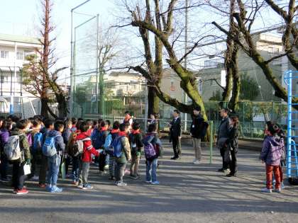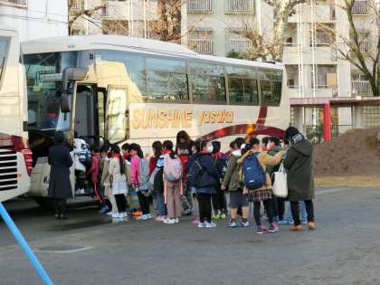 18日(木)、4年生の社会科見学の日です。実行委員の進行により出発式が行われ、クラスごとにバスに乗り込みました。専科の先生や主事さん、ボランティアさんの見送りを受けて、午前8時40分に最初の見学先に向けて出発しました。