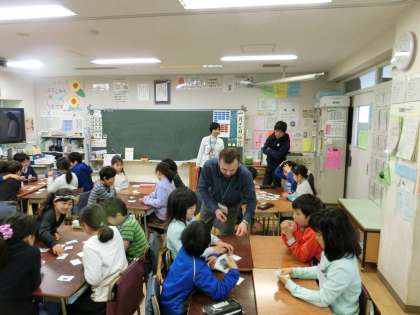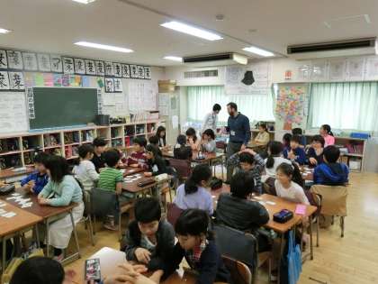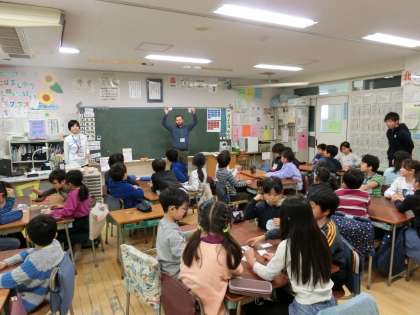 18日(木)は3学期になって2回目のALTによる授業がありました。かるたのようにカードを取り合ったり、トランプのように裏返したカードをめくったりしながら、英語の響きに親しんでいました。子どもたちは楽しんで取り組んでいました。写真は3年1組の様子です。